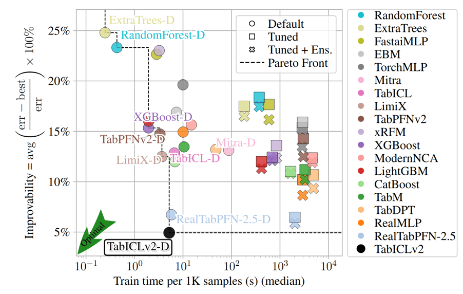 [1] Jingang Qu, David Holzmüller, Gaël Varoquaux, Marine Le Morvan. (2026). TabICLv2: A better, faster, scalable, and open tabular foundation model. https://arxiv.org/abs/2602.11139 Code: https://github.com/soda-inria/tabicl Installation: https://pypi.org/project/tabicl/